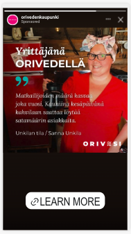 Tällä tavoin Oriveden kaupunki pystyy panostamaan sisällöntuotantoon ja oman brändinsä kehittämiseen, kun taas GOsome hoitaa kampanjoiden näkyvyyden, kohdentamisen ja tehokkuuden. Tämän täydellisen roolijaon ansiosta yhteistyö on ollut paitsi tehokasta, myös erittäin sujuvaa ja molempia osapuolia hyödyttävää.